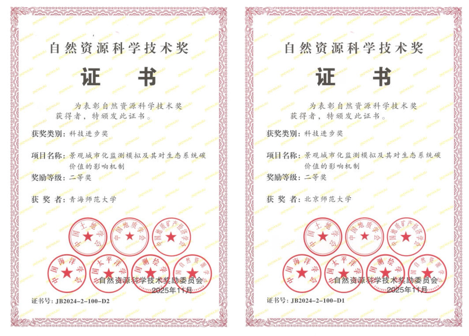 “景观城市化监测模拟及其对生态系统碳价值的影响机制”荣获自然...[2025-11-26]