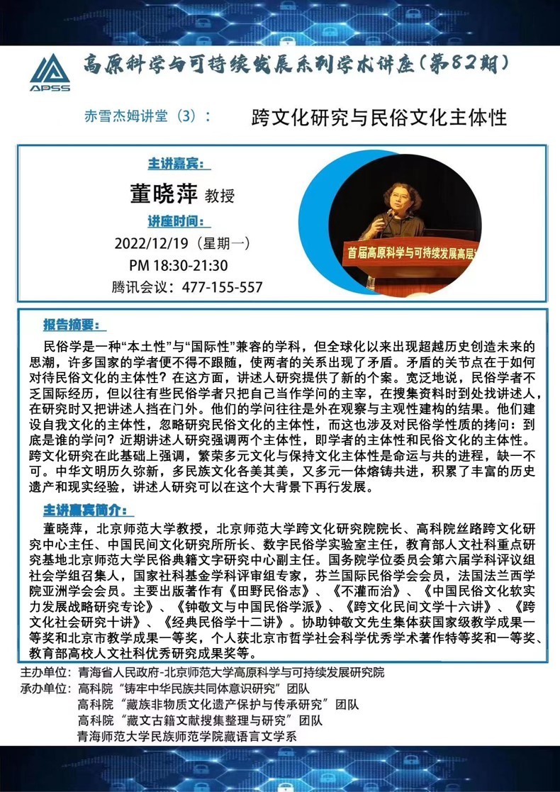 讲座主题:跨文化研究与民俗文化主体性